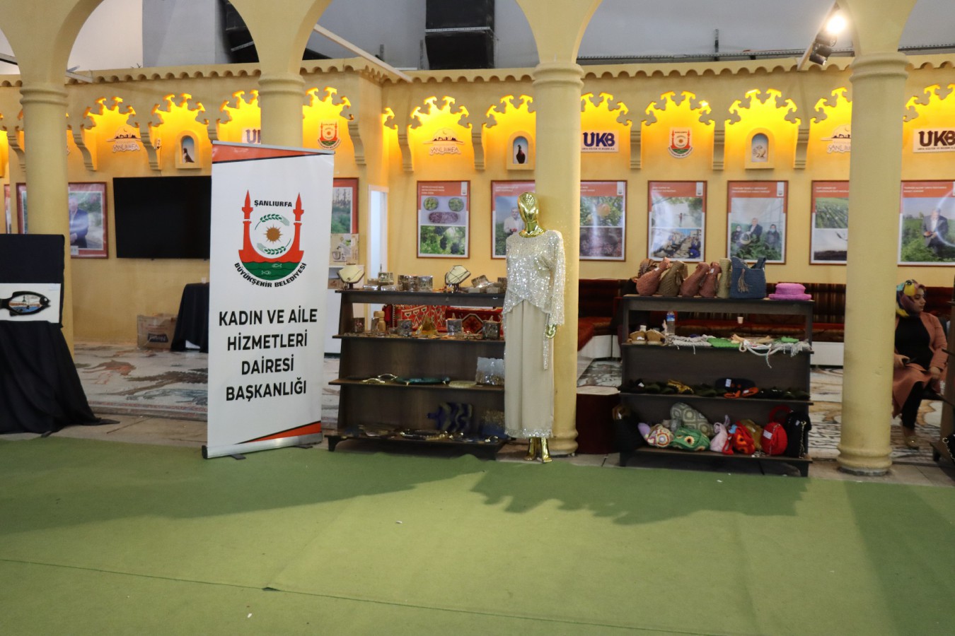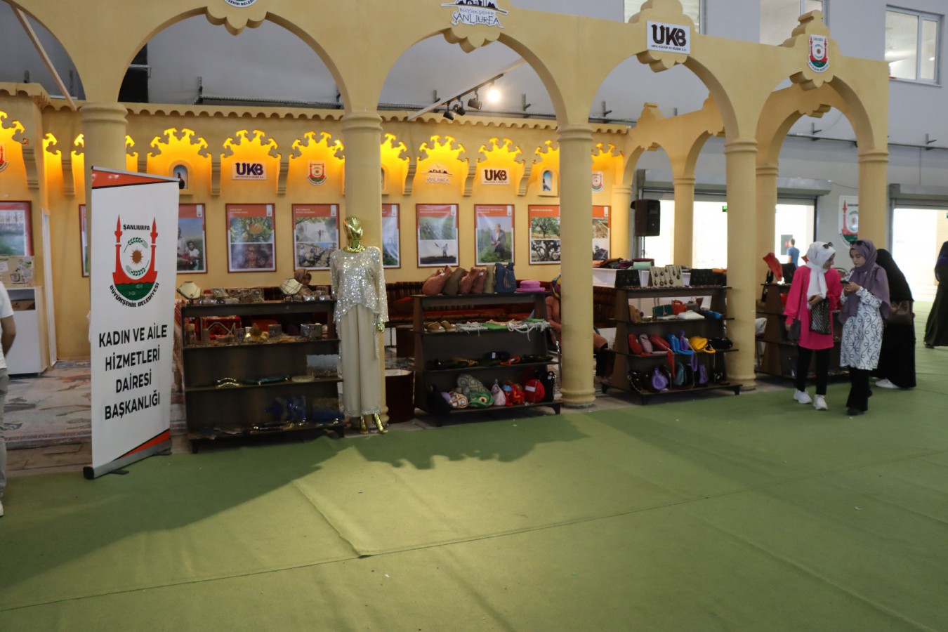Şanlıurfa Fuar Merkezinde düzenlenen Moda ve Alışveriş Fuarında Büyükşehir Belediyesi Kadın ve Aile Hizmetleri Daire Başkanlığının bünyesinde bulunan kadın destek merkezlerinde verilen eğitim ve kurslarda kadınlar tarafından üretilen el emeği göz nuru ürünler de sergiliyor.