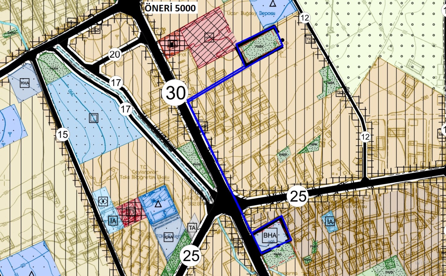 İlimiz Ceylanpınar İlçesi 15 Temmuz Mahallesi 974 ada 1 parselde ‘Park’ olarak planlı alanın ‘Belediye Hizmet Alanı’ olarak değiştirilip eşdeğer değer alan büyüklüğünde 949 ada, 68 parselde ‘Pazar Alanı’ olarak planlı alanın ‘Park’ olarak düzenlenmesine yönelik hazırlanmış 1/5000 ölçekli Nazım İmar Planı Değişikliği teklifi Büyükşehir Belediye Meclisinin 09.09.2025 tarih ve 300 sayılı kararı ile onaylanmıştır.