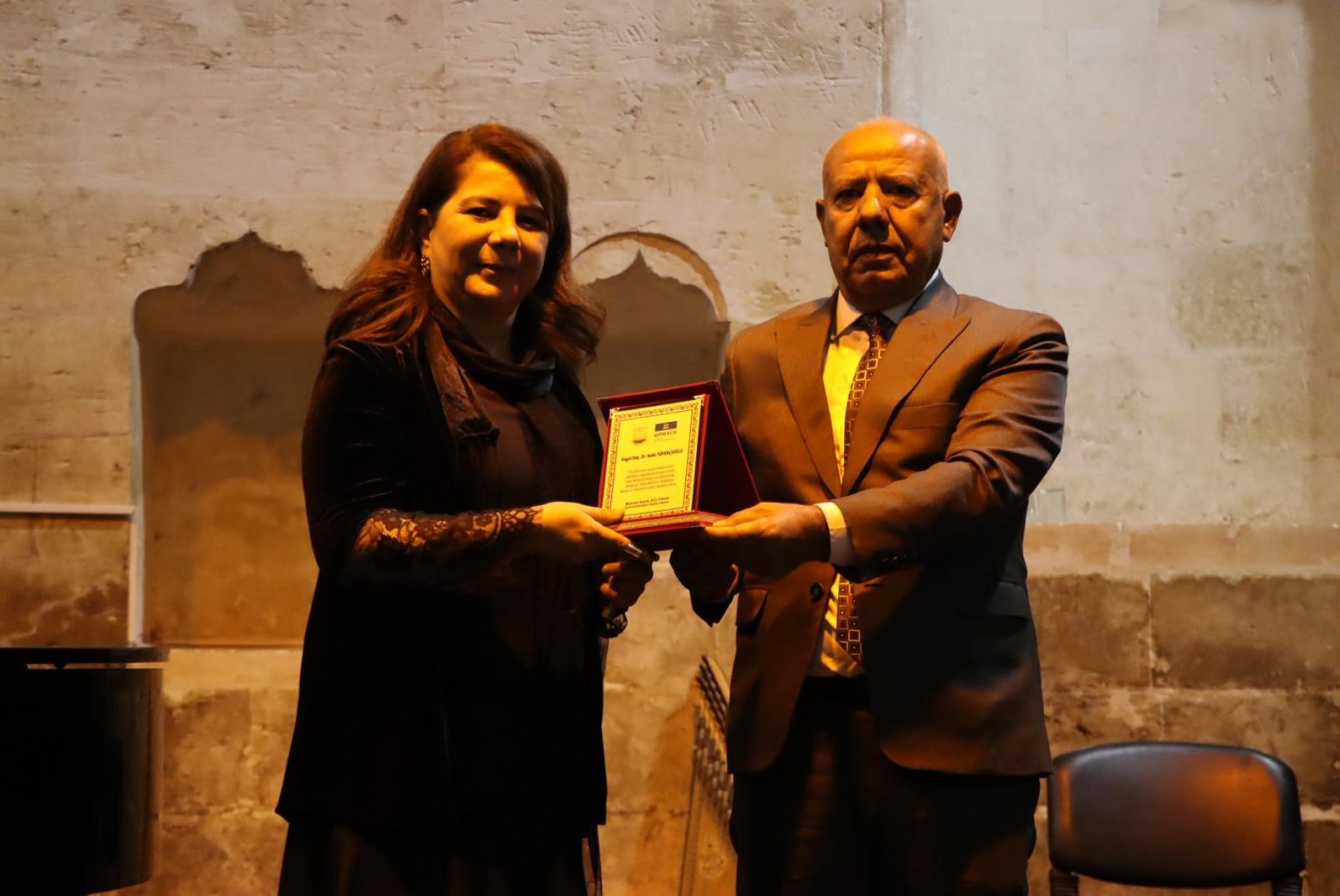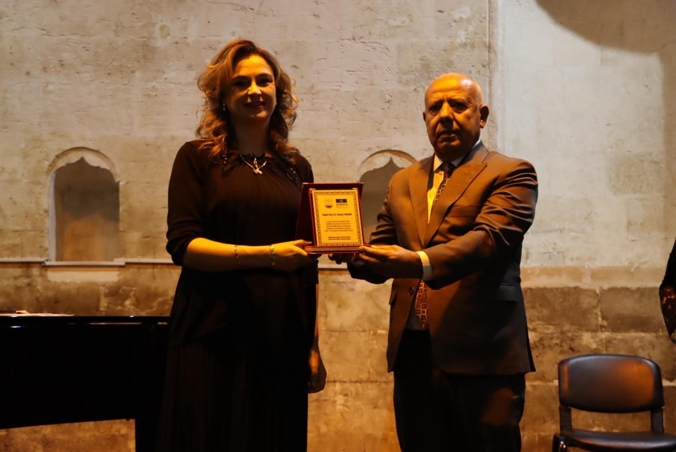 Etkinliğin sonunda sanatçılar Doç. Dr. Seda Tüfekçioğlu ve Doç. Dr. Deniz Tunçer’e katkılarından dolayı teşekkür edilirken plaketleri, Şanlıurfa Büyükşehir Belediye Başkanvekili Cuma Demir tarafından takdim edildi.