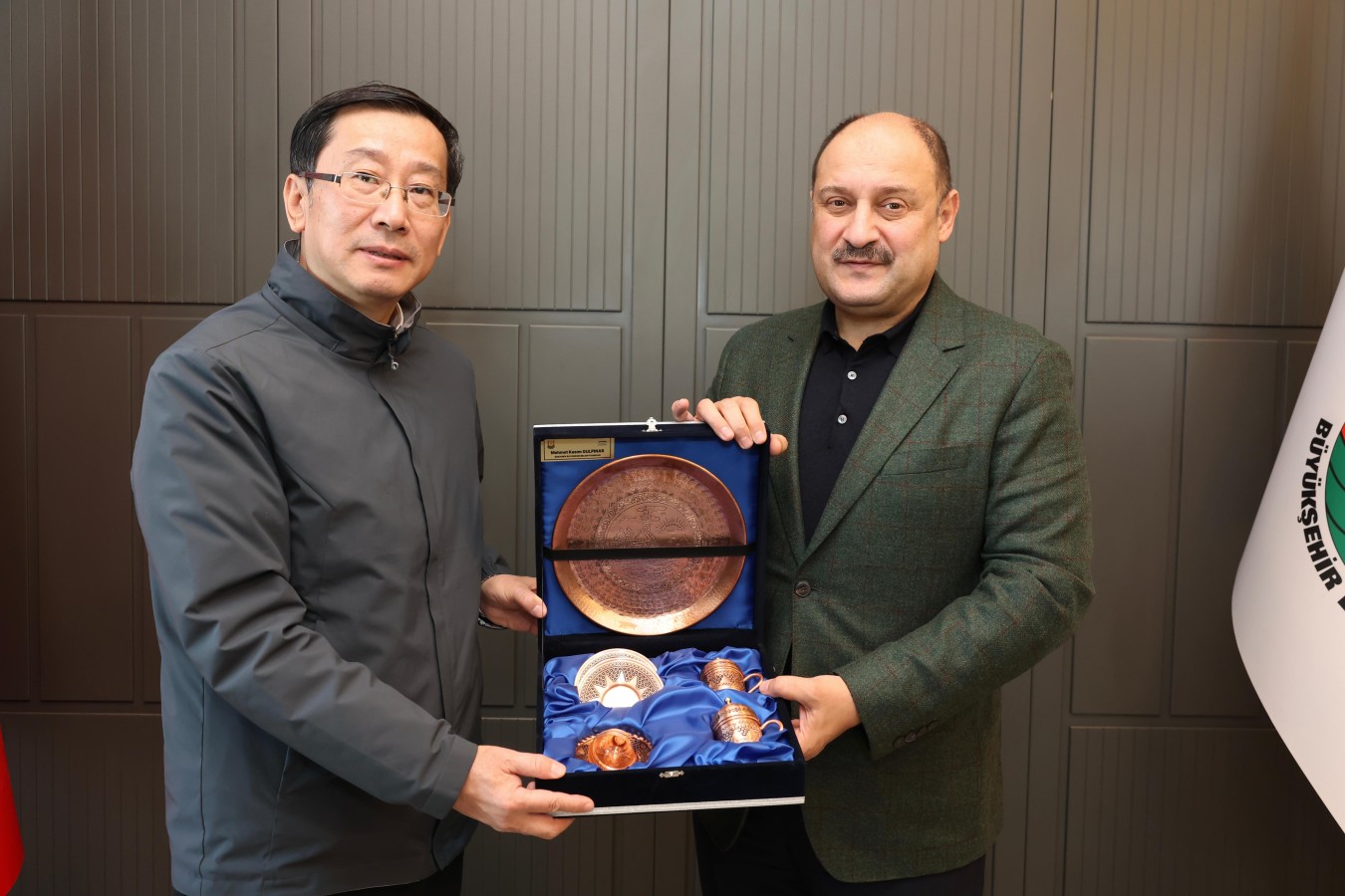Başkan Gülpınar, ziyaretin anısına Çinli Bakan Yardımcısı Rao Quan’a çeşitli hediyeler takdim etti.