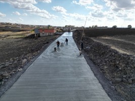 Kış aylarında sert hava koşullarının hâkim olduğu bölgede, dayanıklılığıyla öne çıkan beton yol uygulaması tercih edildi. Uzun ömürlü bu kaplama sayesinde yolların uzun yıllar bakım gerektirmeden hizmet vermesi hedefleniyor.