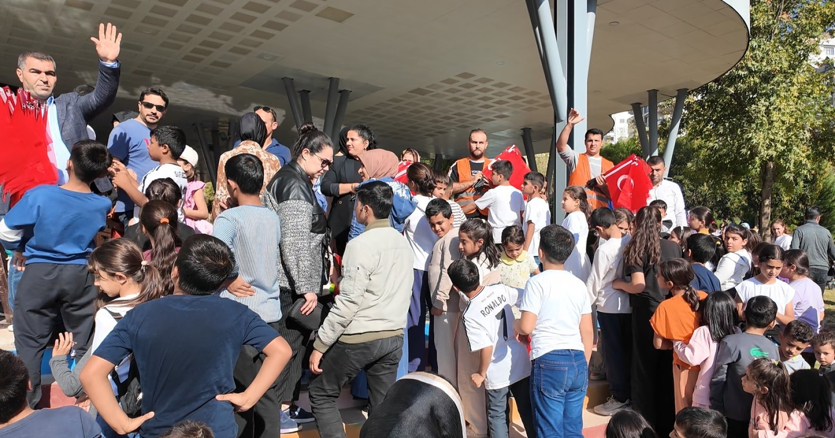 29 Ekim Cumhuriyet Bayramı etkinlikleri kapsamında, Şanlıurfa’da çocuklar ve aileleri unutulmaz bir gün yaşadı. Şanlıurfa Büyükşehir Belediyesi bünyesindeki Çocuk Oyun Dünyasında düzenlenen programda, miniklere yönelik bayrak dağıtımı yapıldı. Bayraklarını gururla sallayan çocuklar kadar aileler de etkinliğe büyük ilgi gösterdi.