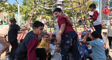Bayrak dağıtımının ardından çocuklar, uzun süredir kapalı olmasının ardından onarım çalışmaları tamamlanarak yeniden hizmete açılan Çocuk Oyun Dünyası’nda doyasıya eğlendi. Oyun gruplarında gönüllerince vakit geçiren çocukların mutlulukları yüzlerinden okundu.