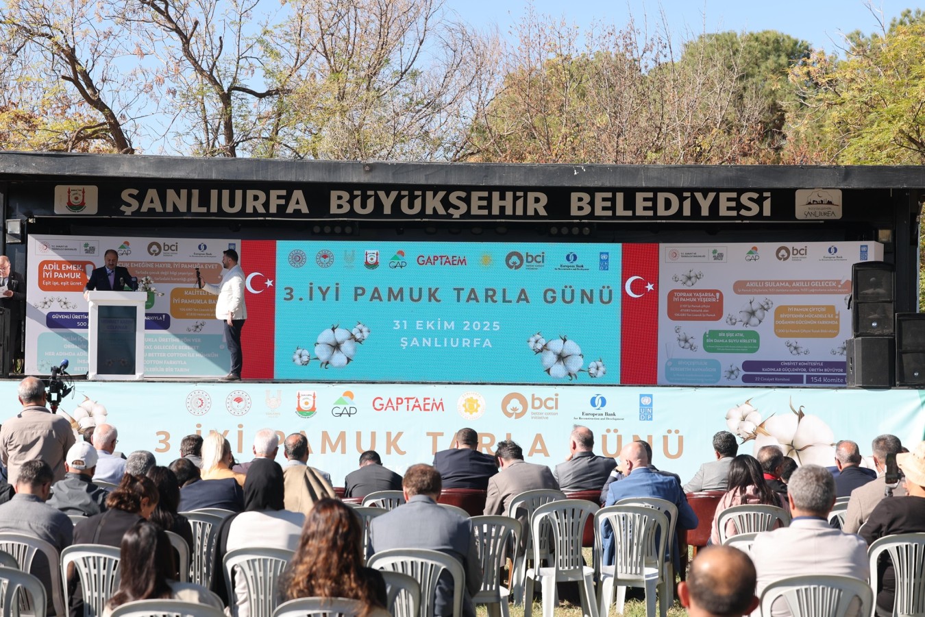 Sanayi ve Teknoloji Bakanlığı GAP Bölge Kalkınma İdaresi Başkanlığı ve Birleşmiş Milletler Kalkınma Programı (UNDP) iş birliğiyle yürütülen İyi Pamuk Projesi kapsamında, pamuk üretiminde çevreye duyarlı uygulamaları yaygınlaştırmayı hedefleyen 3. İyi Pamuk Tarla Günü Etkinliği Şanlıurfa’da gerçekleştirildi.