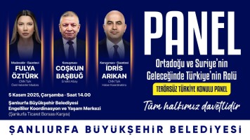 Şanlıurfa Büyükşehir Belediyesi ile Şanlıurfa Kent Konseyi iş birliğinde, “Ortadoğu ve Suriye’nin Geleceğinde Türkiye’nin Rolü” başlıklı panel gerçekleştirilecek.