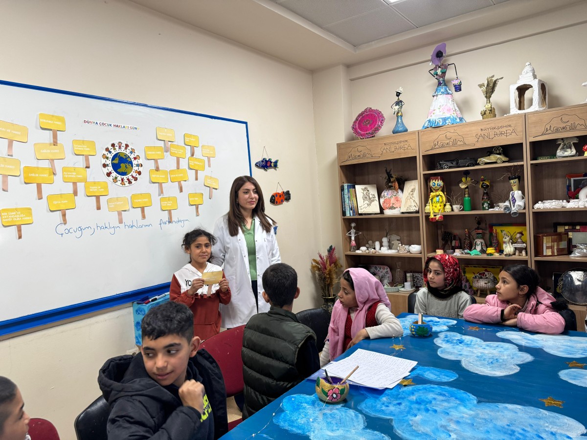 Büyükşehir Belediyesi Sağlık İşleri Daire Başkanlığı bünyesindeki bir uzman tarafından çocuklara çocuk hakları konusunda eğitim verildi. Etkinlikte, çocukların sesini duyurmak, haklarını hatırlatmak ve güvenli, mutlu, umut dolu bir dünya için farkındalık oluşturmak amaçlandı.