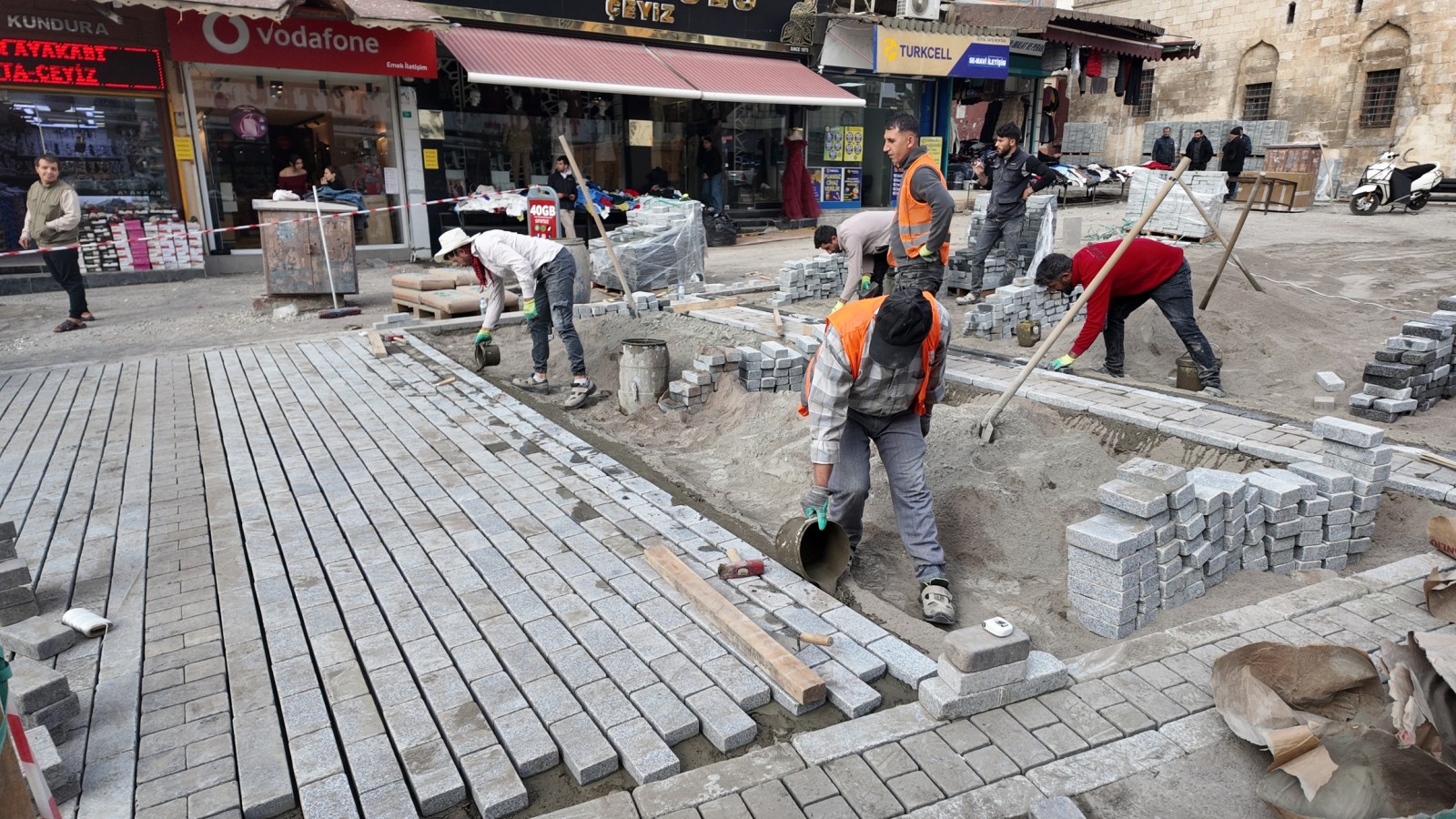 Yayalaştırma çalışmaları kapsamında Büyükşehir Belediyesi yalnızca araç trafiğini sınırlamakla kalmıyor, aynı zamanda alanın bütününü kapsayan bir üstyapı ve çevre düzenlemesi gerçekleştiriyor. Uzun yıllardır kullanılan ve tahrip olan 11.240 metrekarelik zemin, İstanbul’daki Sultanahmet Meydanı örnek alınarak tamburlu bazalt ve granit taşlarla yeniden döşeniyor. Ekiplerin yürüttüğü yoğun çalışmalarla, bölgede hem daha dayanıklı hem de estetik bir zemin oluşturulması hedefleniyor.