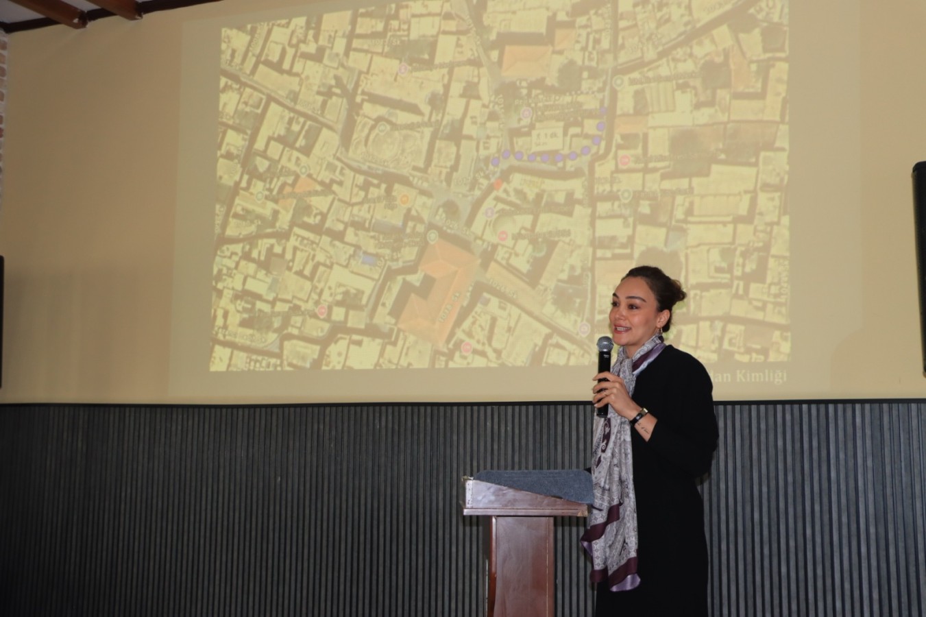 Şanlıurfa Büyükşehir Belediyesi Proje Danışmanı Şeyda Kutluoğlu tarafından öğrencilere ve öğretim görevlilerine, bölgenin tarihi yapısı, mimari özellikleri ve kentsel dokusu hakkında kapsamlı bir sunum yapıldı.