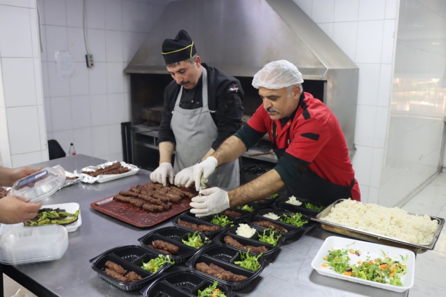 Büyükşehir Belediyesinin kendi tesislerinde özenle hazırlanan ve paketlenen kente özgü kebap ve sıcak yemekler binlerce ihtiyaç sahibi ailenin sofrasına doğru yola çıkıyor.