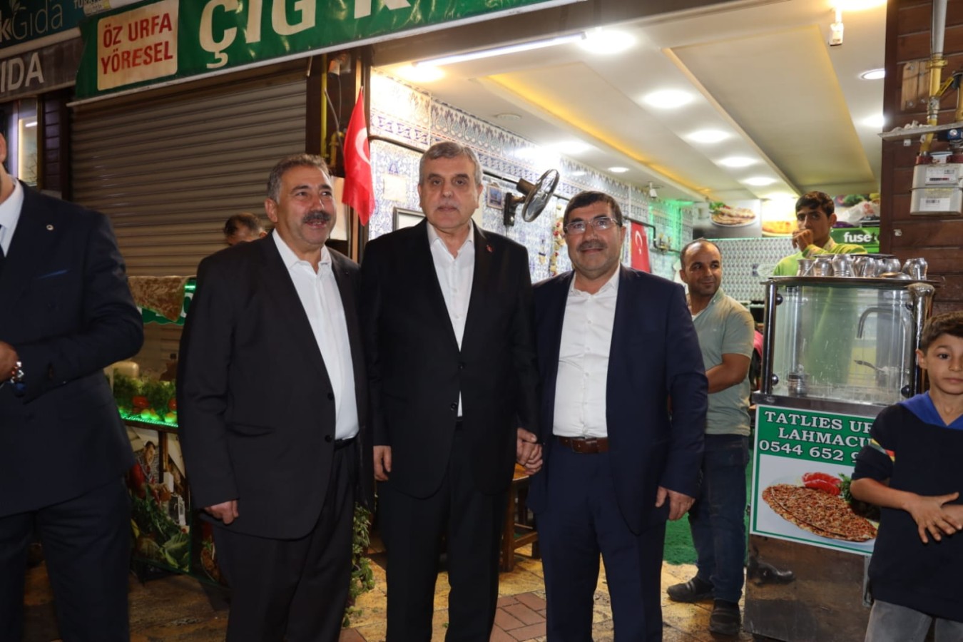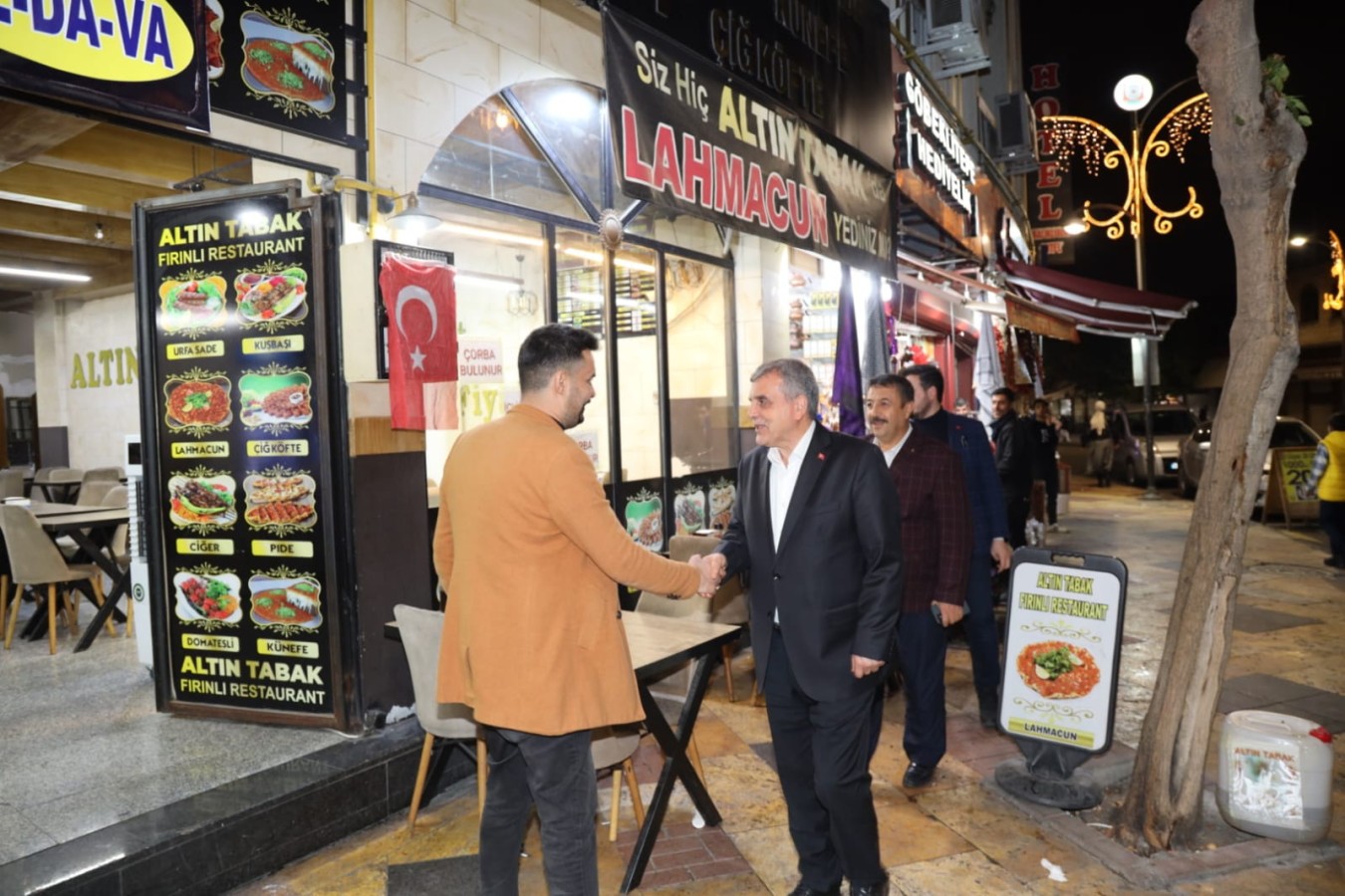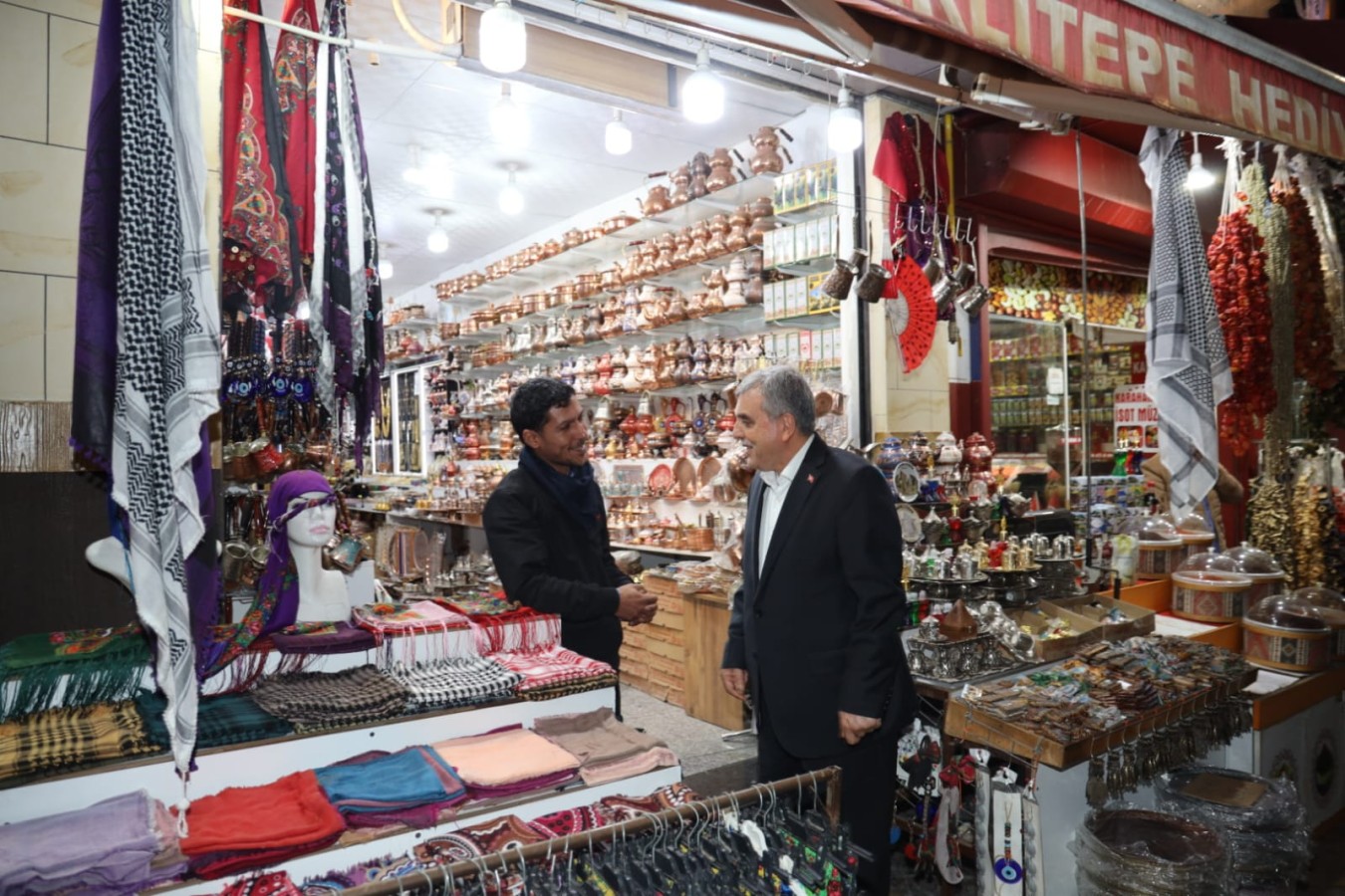 Şanlıurfa Büyükşehir Belediye Başkanı Zeynel Abidin Beyazgül, AK Parti Şanlıurfa Gurup Başkanvekili Faruk Bayuk ile birlikte esnafları ziyaret ederek talep ve önerilerini dinledi.