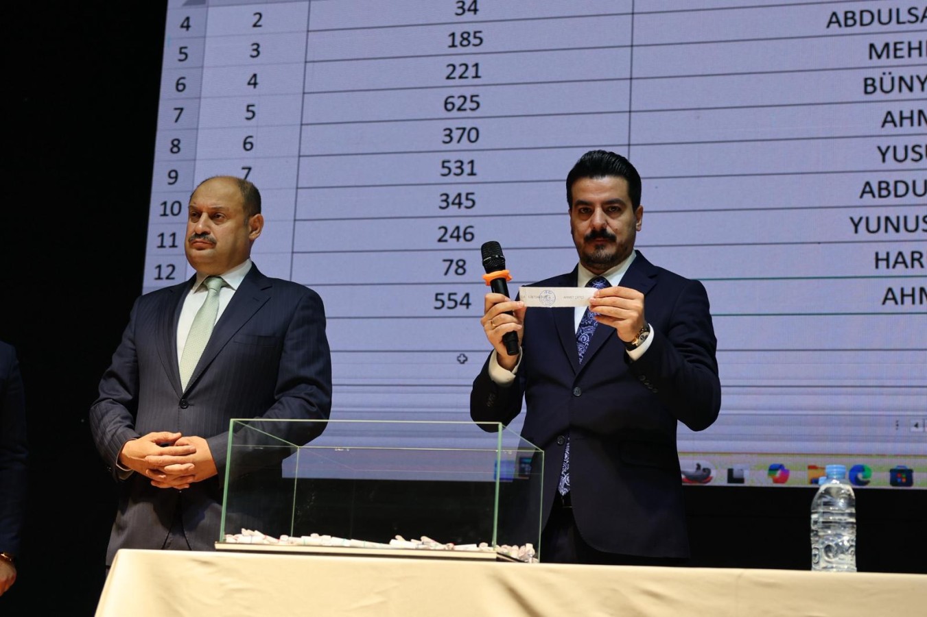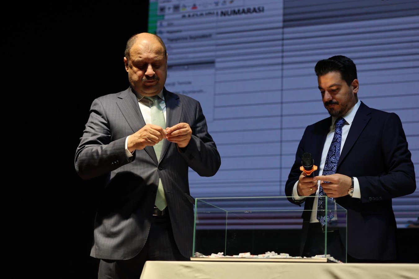 Daha sonra Başkan Gülpınar ve iş başvurusunda bulunan adaylar, üzerinde isimlerin yazılı olduğu kâğıtları cam fanusun içerisinden tek tek çekerek 60 asil personeli belirledi. Ayrıca 60 yedek isim de çekilen kura ile belli oldu.