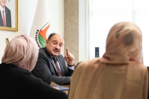Ziyaretin sonunda Başkan Mehmet Kasım Gülpınar, misafir heyet başkanı Delila Yusuf Addus’a ziyaretin anısına özel bir fincan takımı hediye etti.