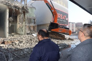 SSK CADDESİ’NDE YOLU GENİŞLETMEK İÇİN YIKIM ÇALIŞMALARI SÜRÜYOR
