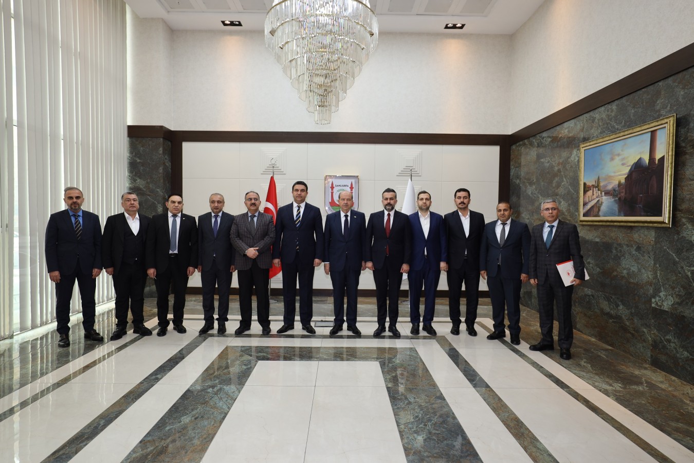 Ziyaretin sonunda Başkan Vekili Sait Ağan ve Genel Sekreter Mithat Can Kutluca tarafından Cumhurbaşkanı Ersin Tatar’a Şanlıurfa’ya özgü çeşitli hediyeler takdim edildi.