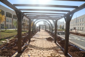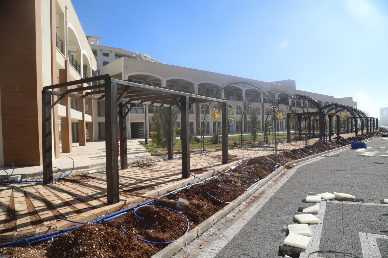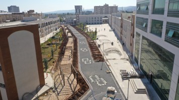 Şanlıurfa’yı hak ettiği yere taşımak için yenilikçi projeler üreten ve bunları teker teker hayata geçiren Büyükşehir Belediyesi, 'İlk Toplanma Merkezi' olarak bilinen Eski Hal Pazarı kavşağında yapımı tamamlanan TOKİ'ye ait iş merkezi bahçesinde uygulanan kentin en uzun 'Yeşil Koridor Projesi'nin tamamlamak üzere.