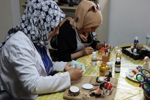 Şanlıurfa Büyükşehir Belediyesi tarafından Halfeti ilçesinde hizmet veren Halfeti Kadın Destek Merkezindeki kursiyer kadınlar, Fırat kenarından çıkan taşları işleyerek rengarenk süs eşyası haline getiriyor.