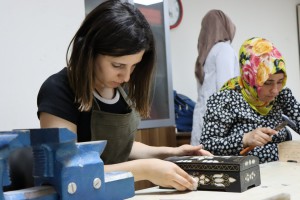 Her gün yüzbinlerce yerli ve yabancı turistin ziyaret ettiği sakin şehir Halfeti’de farklı branşlarda birçok atölyeyi içerisinde barındıran Kadın Destek Merkezindeki kurslara katılan kadınlar, burada el becerilerini geliştiriyor.