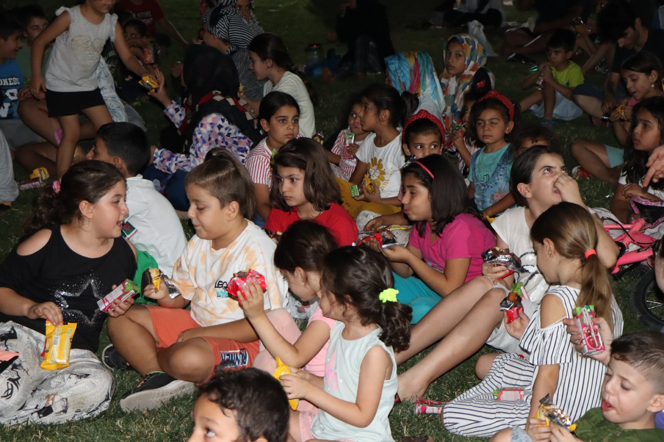 Etkinlik alanına aileleriyle gelen çocuklar bir yandan açık havada film izleme imkânı bulurken diğer yandan Büyükşehir Belediyesi’nin çeşitli ikramlarıyla anın tadını çıkarıyor.