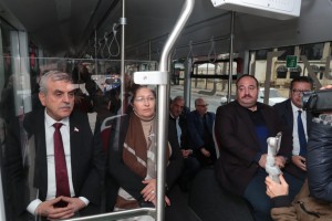 Trambüs içerisinde değerlendirmelerde bulunan ilçe belediye başkanları ve test sürüşüne katılan davetliler Şanlıurfa Büyükşehir Belediye Başkanı Zeynel Abidin Beyazgül ile Şanlıurfa’nın çağ atladığını ve kente önemli yatırımların kazandırıldığını belirterek teşekkür ettiler.