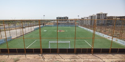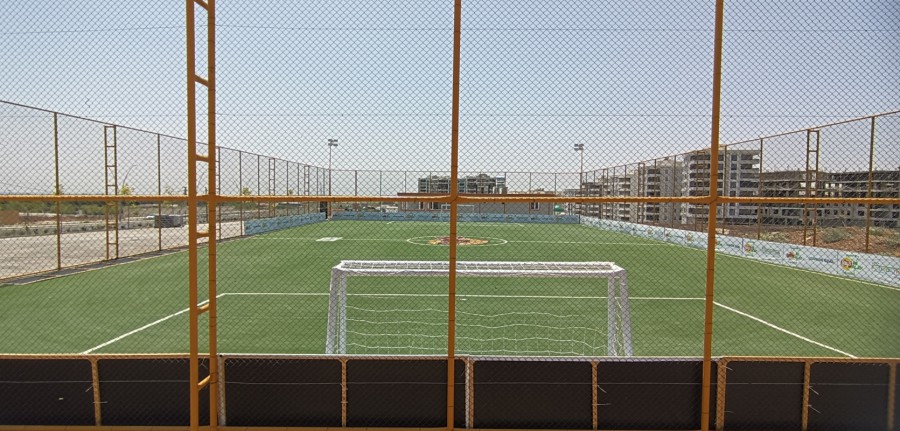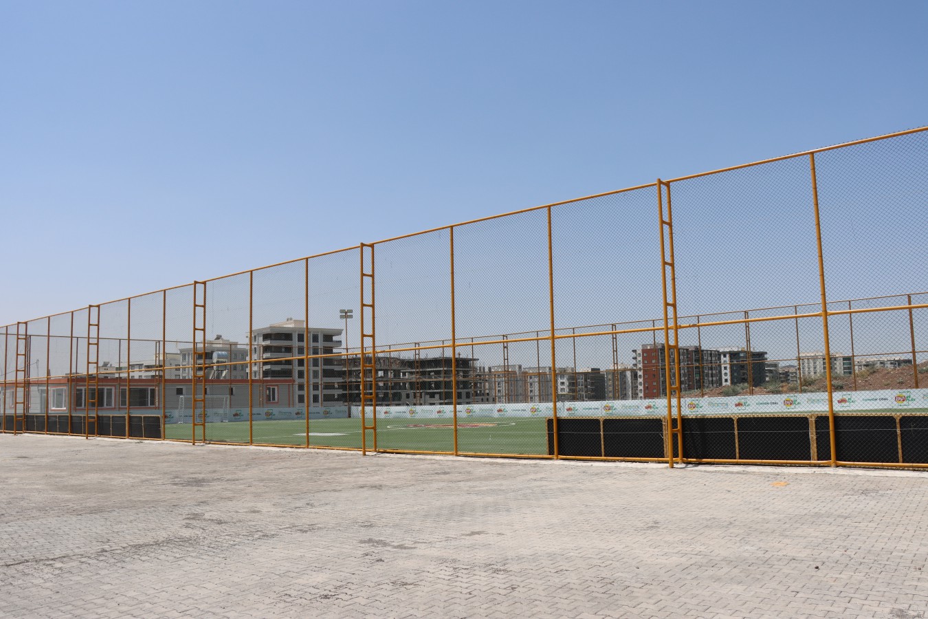 Türkiye'nin en genç şehrine yakışan hizmetleri bir bir hayata geçiren Şanlıurfa Büyükşehir Belediyesi Uluslararası kuruluşların da katkılarıyla Bilim Merkezi yakınında yeni bir halı sahayı daha kente kazandırıyor.