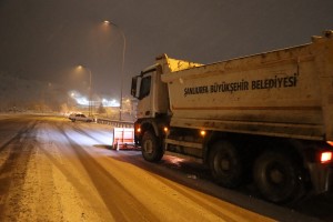 Şanlıurfa Büyükşehir Belediyesi, Başkan Mehmet Kasım Gülpınar’ın talimatları doğrultusunda, dünden itibaren etkisini artıran kar yağışına karşı tüm birimleriyle seferber oldu. Ulaşımda herhangi bir aksaklık yaşanmaması için 205 araç ve yaklaşık 800 personelle gece gündüz, 3 vardiya halinde sahada görev yapan ekipler, kar küreme ve tuzlama çalışmalarını aralıksız sürdürüyor. Büyükşehir ekipleri, özellikle ana caddelerde trafiğin rahat ve güvenli bir şekilde sağlanması için yoğun çaba harcıyor.