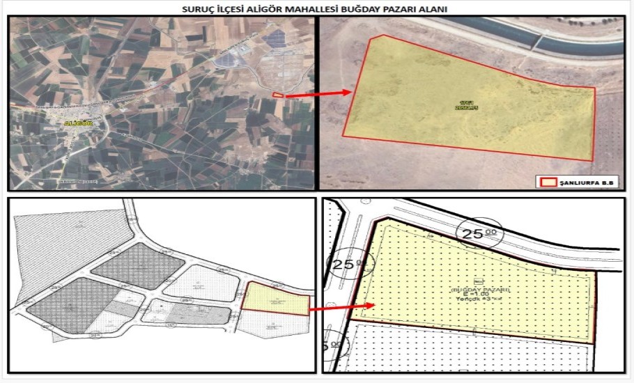 n)İlimiz, Suruç İlçesi, Küçük Sergen Mahallesi, 176 ada 1 numaralı taşınmaz Şanlıurfa İli sınırları içerisinde faaliyet gösteren Buğday Pazarı (zahireci vb.) ile ilgili iştigal edenlere satılacaktır.