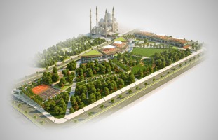 10 kubbeli külliye çelik köprü ile 11 Nisan Şehir parkıyla birleştirilecek.