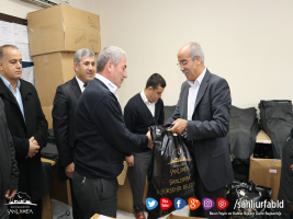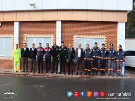 Aktarma merkezinde düzenlenen kışlık iş elbisesi dağıtım programına Şanlıurfa Büyükşehir Belediyesi Genel Sekreteri Abdülkadir Açar, BELSAN Yönetim Kurulu üyesi Sait Kaya, BELSAN Genel Müdürü Nusret Urmak ve birim müdürleri katıldı.