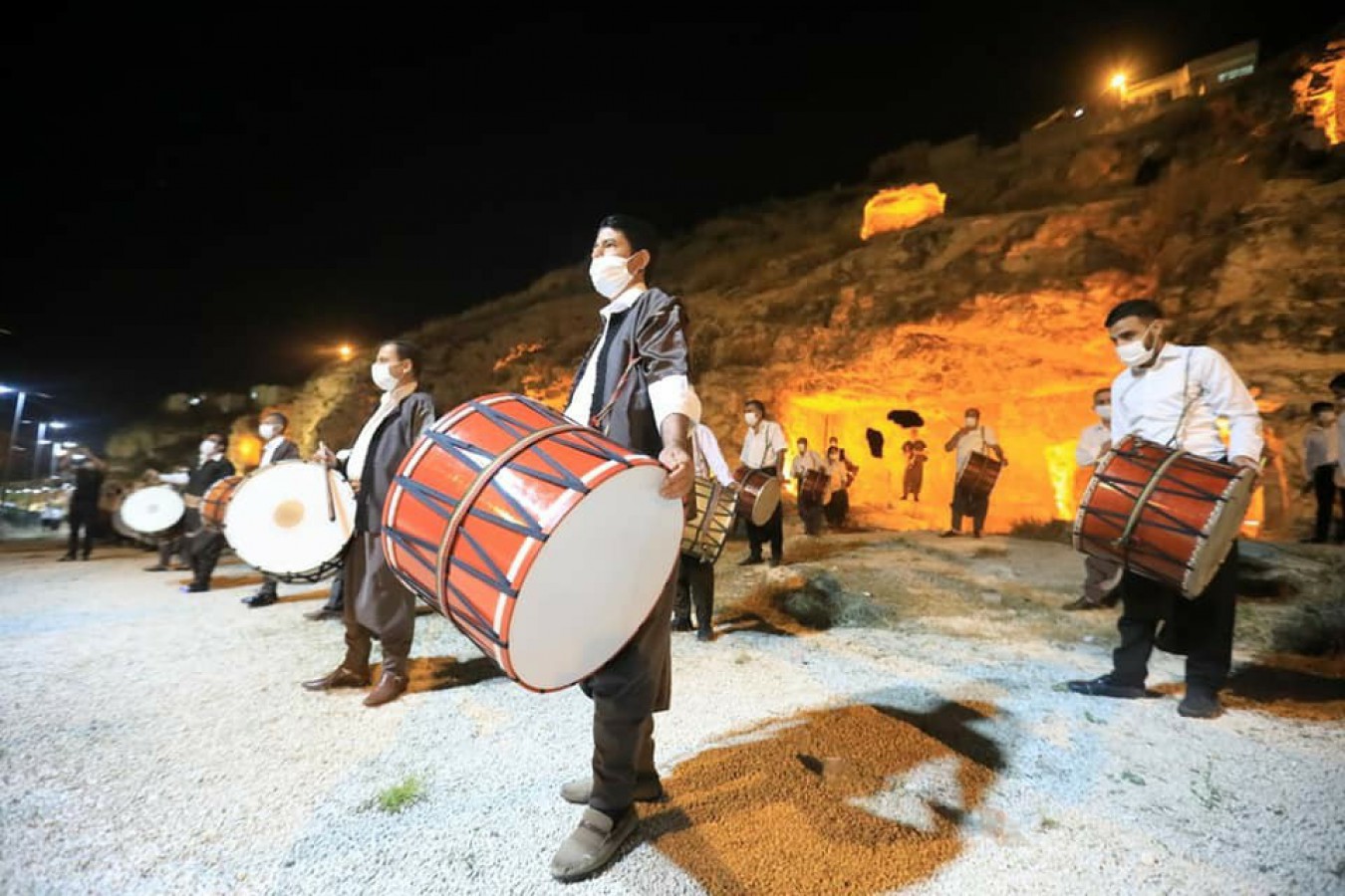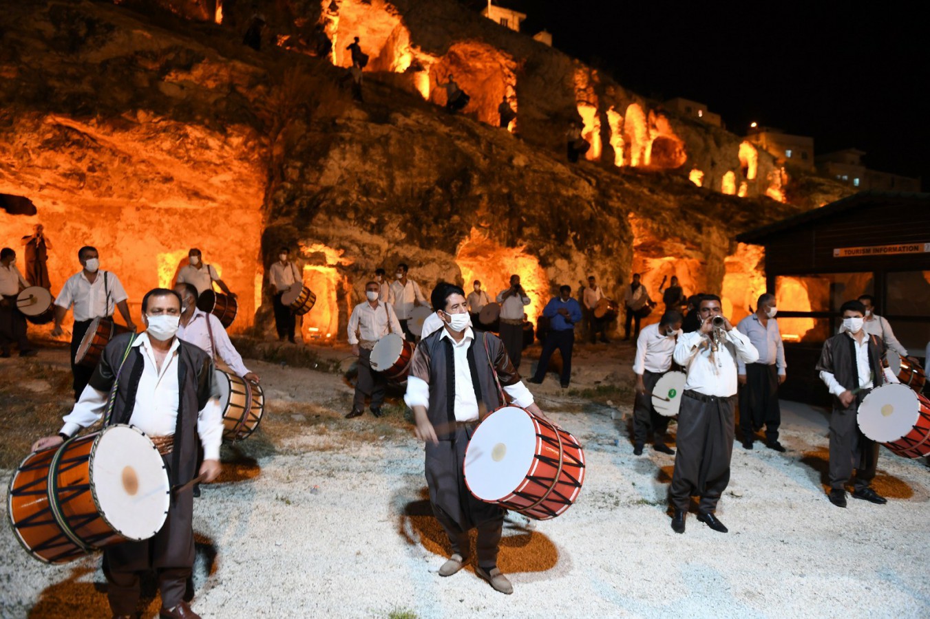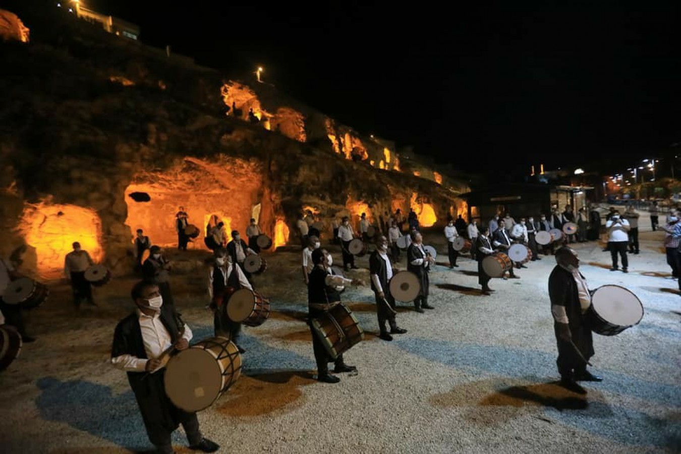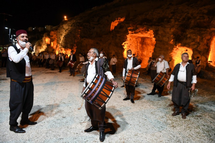 Şanlıurfa Büyükşehir Belediyesi'nin verdiği desteğin ardından moral depolayan davulcular, Büyükşehir Belediyesi’nin turizme kazandırdığı dünyanın en büyük nekropolü olan Kızılkoyun Mağaraları önünde sosyal mesafe kurallarına da dikkat ederek muhteşem bir şova imza attılar.